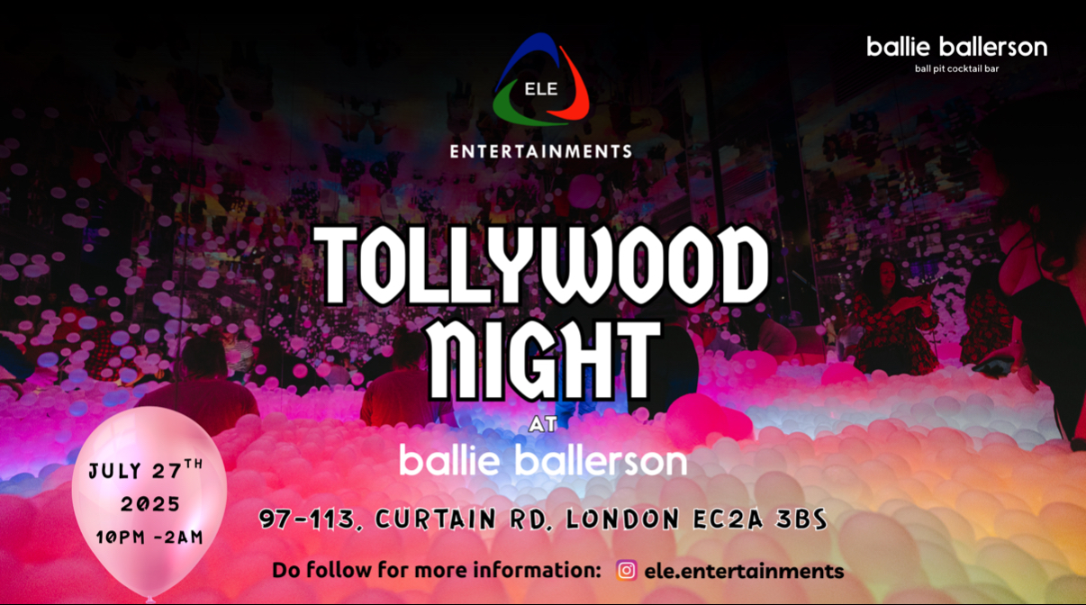 Presented by ELE Entertainments, this vibrant event is happening at the iconic Ballie Ballerson, London’s most exciting and playful ball pit cocktail bar. Get ready to dance the night away surrounded by thousands of glowing balls, neon lights, and the electrifying beats of Tollywood's hottest tracks.