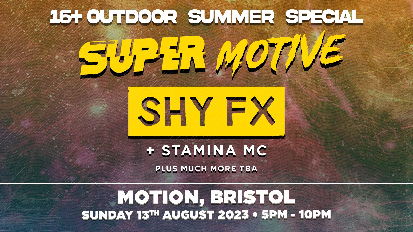 Motive & Super Sonix presents SuperMotive... The 2 biggest 16+ brands in the UK link up for a monster outdoor event at Motion, Bristol on Sunday 13th August! ☀️😎🔊🙌🏻