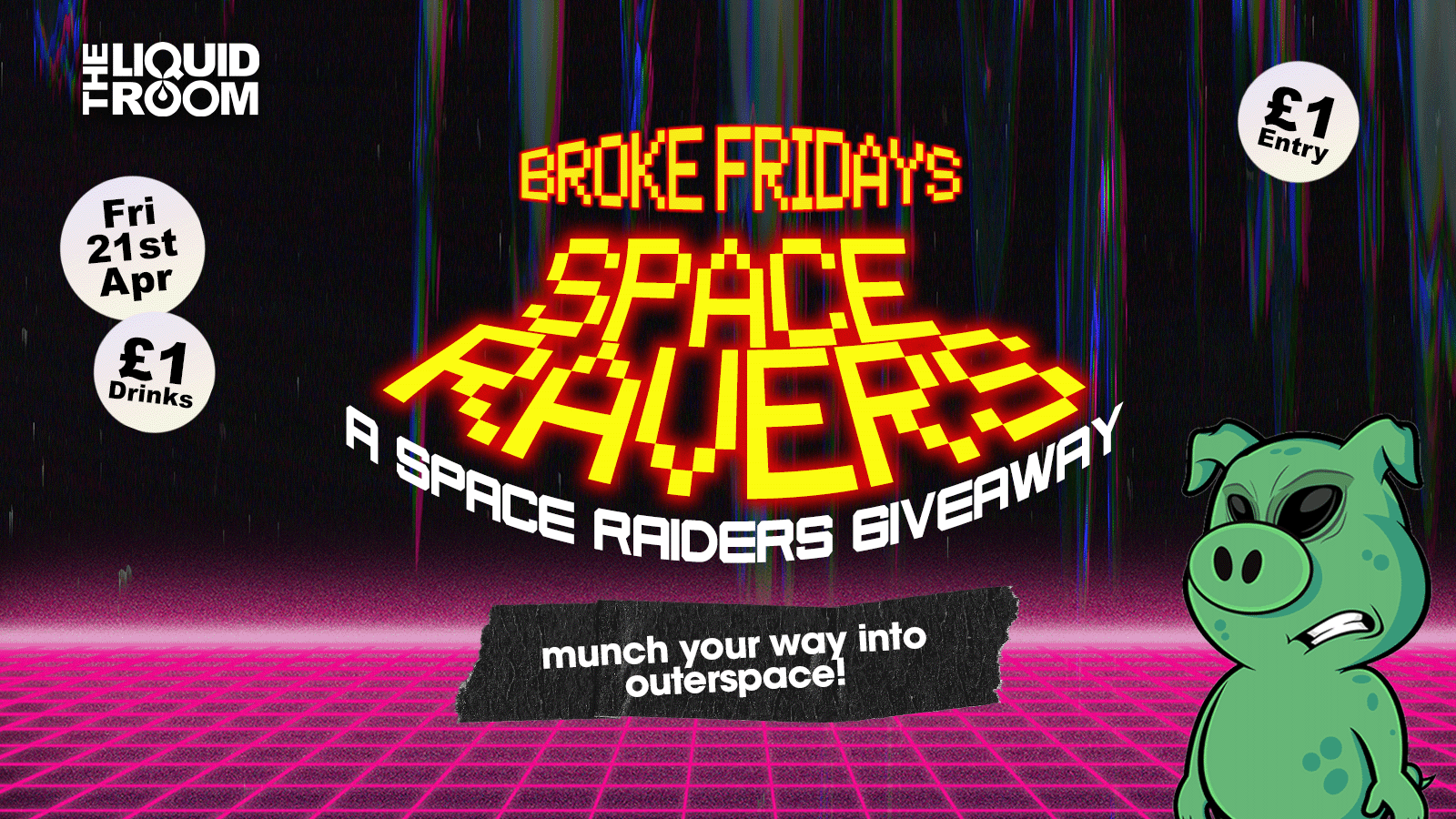 BROKE! FRIDAYS | EDINBURGH'S BIGGEST CLUB NIGHT | £1 ENTRY | £1 DRINKS | ALIEN INVASION! | THE LIQUID ROOM | FRIDAY 21ST APRIL