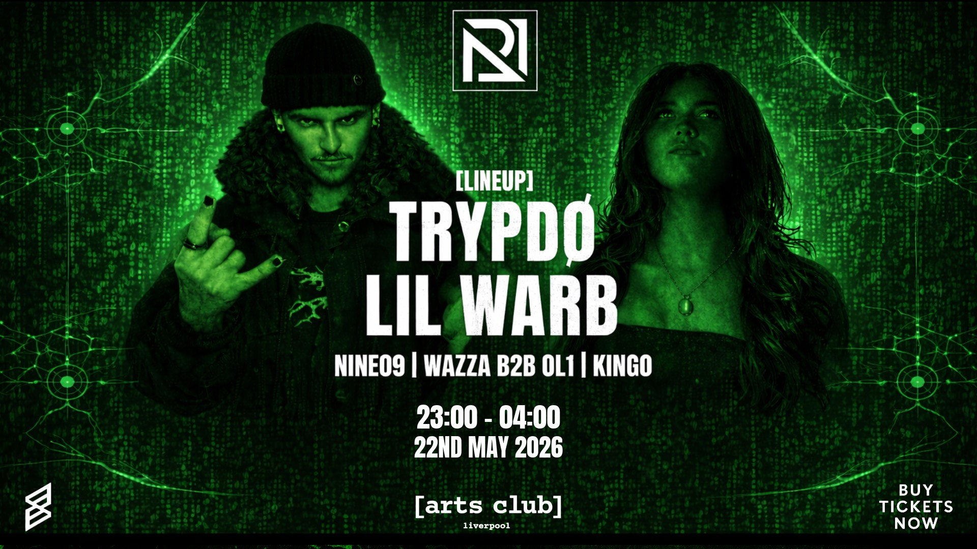 We Are Back For Our Second Show In Liverpool Returning To Arts Club Bringing A Stacked Team Sheet, Bringing TRYPDØ For His England Debut This May Including Support From NINE09, KINGO, WAZZA B2B OL1 + Special Guest!
