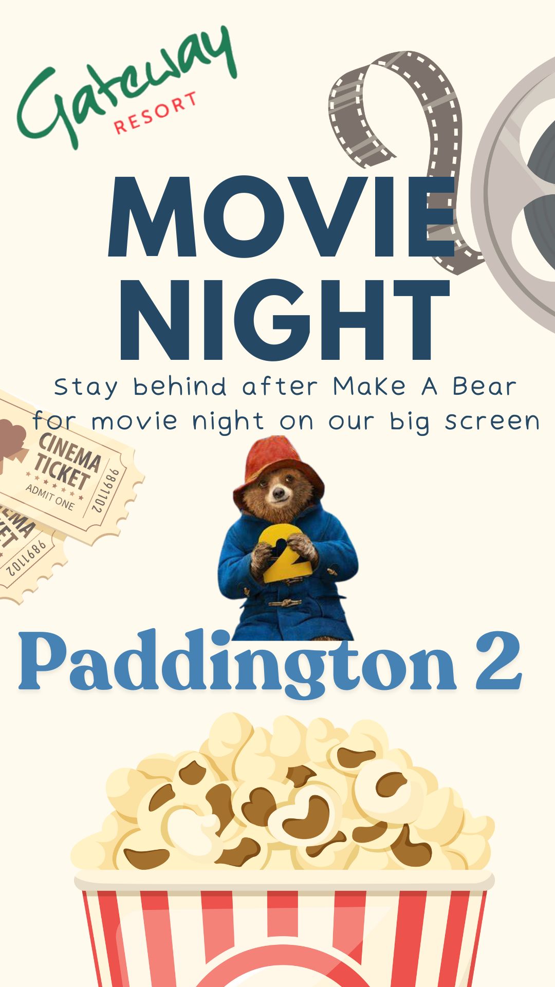 ✨Stick around for a cosy movie night afterwards on our big screen featuring Paddington 2 - at no extra cost! Popcorn, anyone?🎬🍿🎞️