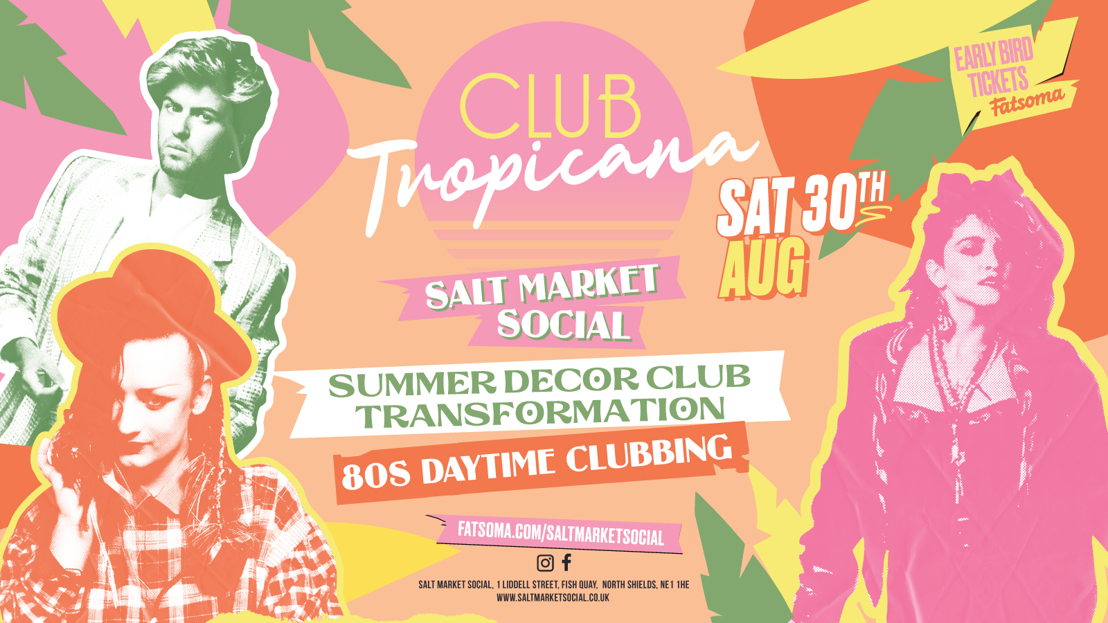 Club Tropicana isn’t just a party—it’s a full-blown summer escape. We’re transforming Salt Market into a glitter-drenched, palm-fringed disco paradise for one unforgettable day-to-night celebration.