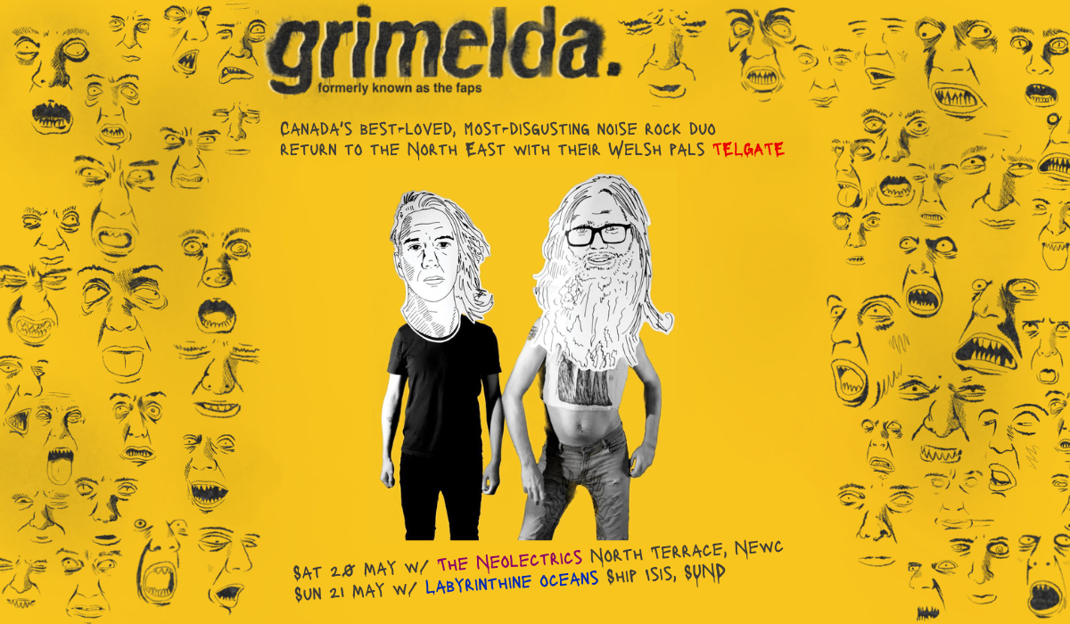 CANADA'S BEST-LOVED, MOST-DISGUSTING NOISE ROCK DUO RETURN TO THE NORTH EAST FOR TWO GIGS WITH THEIR WELSH PALS TELGATE + LOCAL SUPPORT FROM LABYRINTHINE OCEANS.