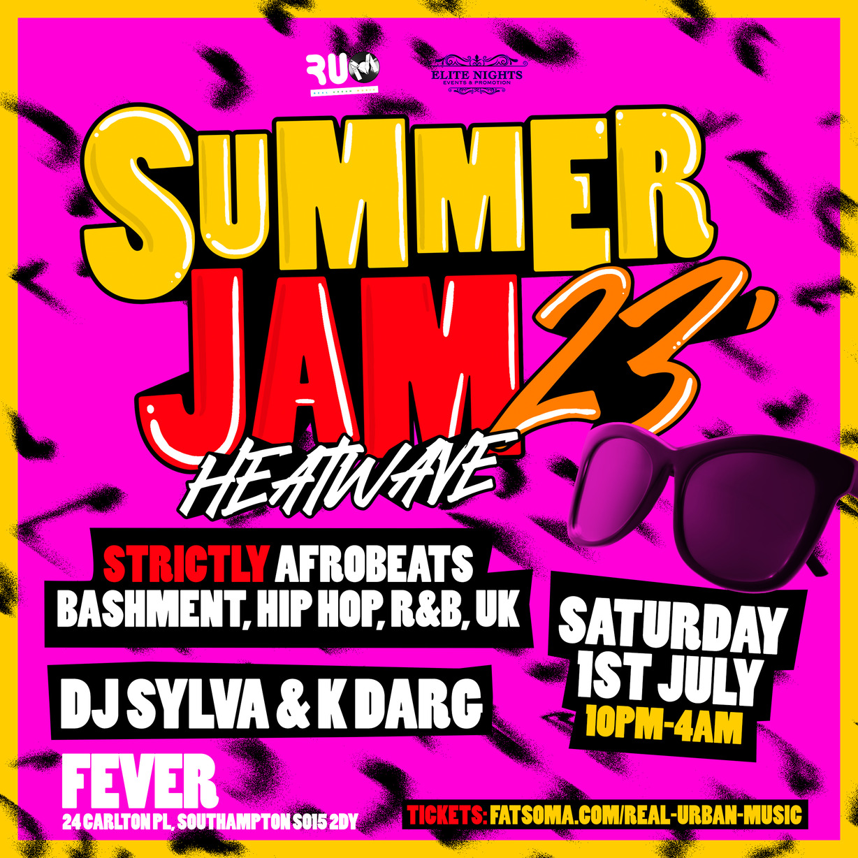 R.U.M & ELITE NIGHTS present to you the SUMMER JAM HEATWAVE Southampton's specialised AFROBEAT, BASHMENT, AMAPIANO, R&B, HIP HOP event taking place on SATURDAY 1ST JULY @ FEVER