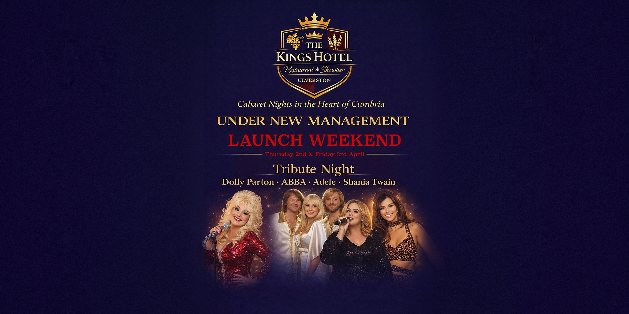Celebrating The Kings Arms relaunch with a live cabaret tribute night featuring ABBA, Adele, Dolly Parton & Shania Twain