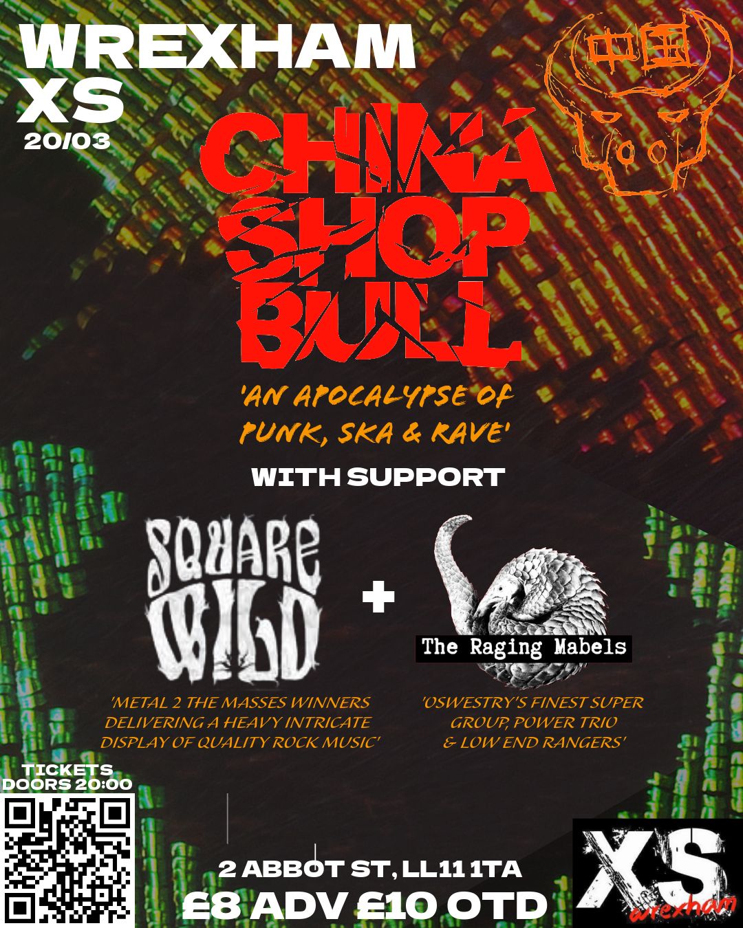 A powerful multi-genre display of live music, delivered by 3 unique bands; The Raging Mabels, Square Wild, and China Shop Bull!