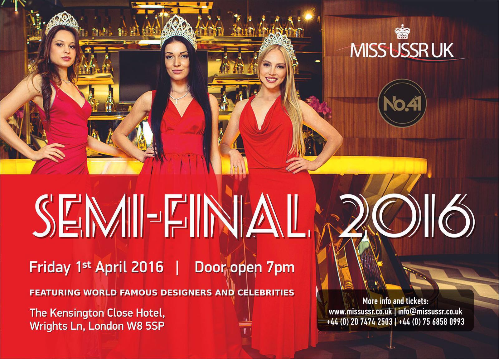 MISS USSR UK warmly invites you to the Semi-Final show of the only international annual beauty contest amongst ladies from post-USSR countries in the United Kingdom which will be held at brand new N41