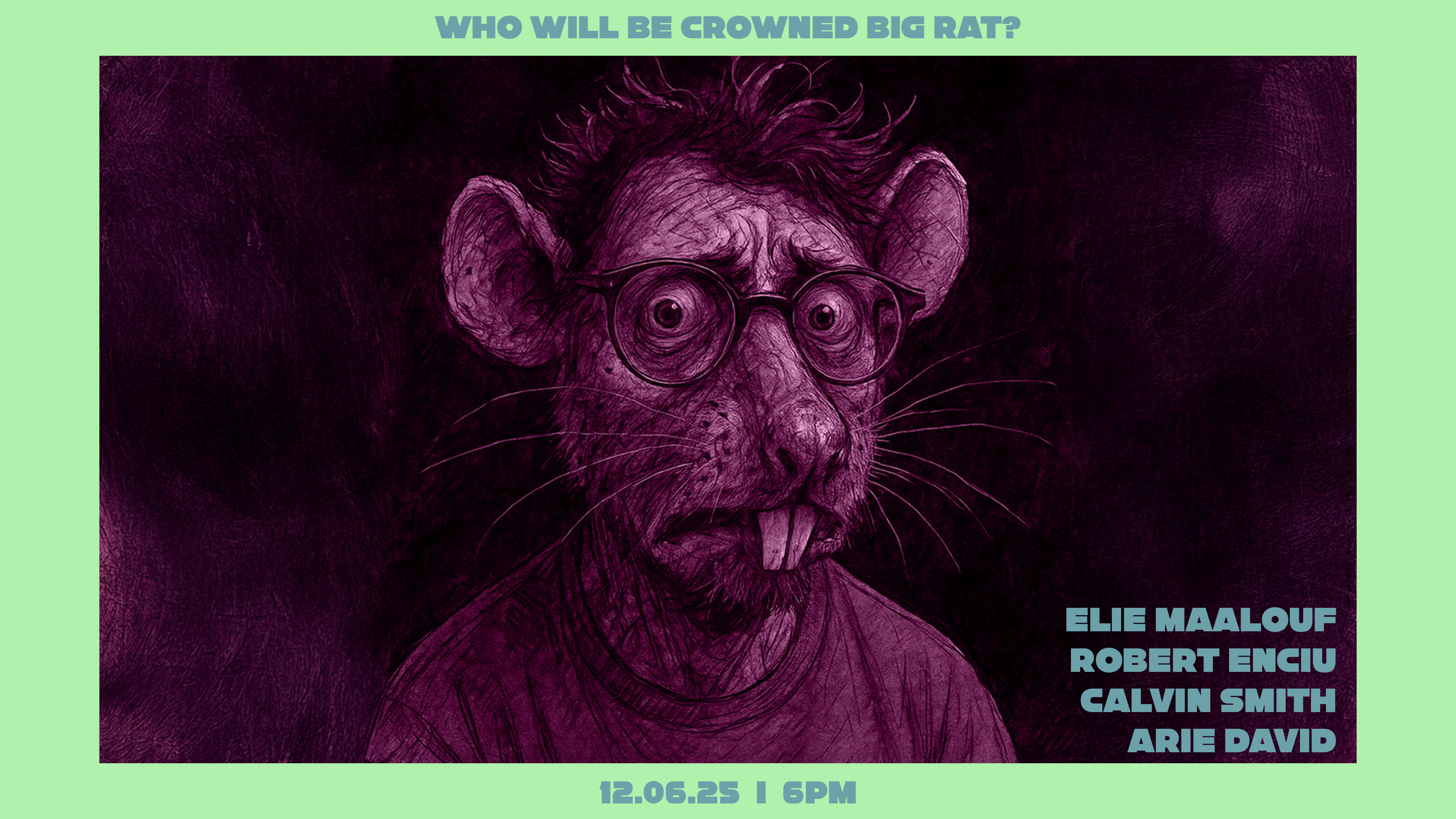 And don’t even think of blinking during the infamous Rat Chat, a full-throttle, in-show gauntlet of unfiltered weirdness, audience chaos, and general ratgasmic nonsense. Bring a date, a mate, your emotionally distant cousin, who cares. Just show up. After all, this isn’t just a comedy night. It’s a mistake you’ll love making.