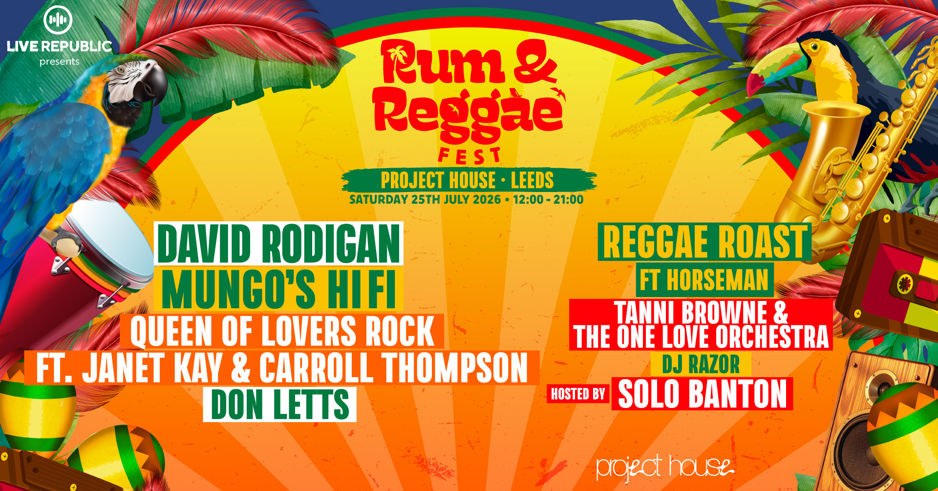 After spreading good vibes and unforgettable shows across the UK, Rum & Reggae Fest is bringing the ultimate island energy straight to Sheffield! On Saturday 25th July 2026, 12pm-9pm, we'll be taking over Project House, turning it into a tropical haven bursting with colour, rhythm, and pure energy! π΄π₯