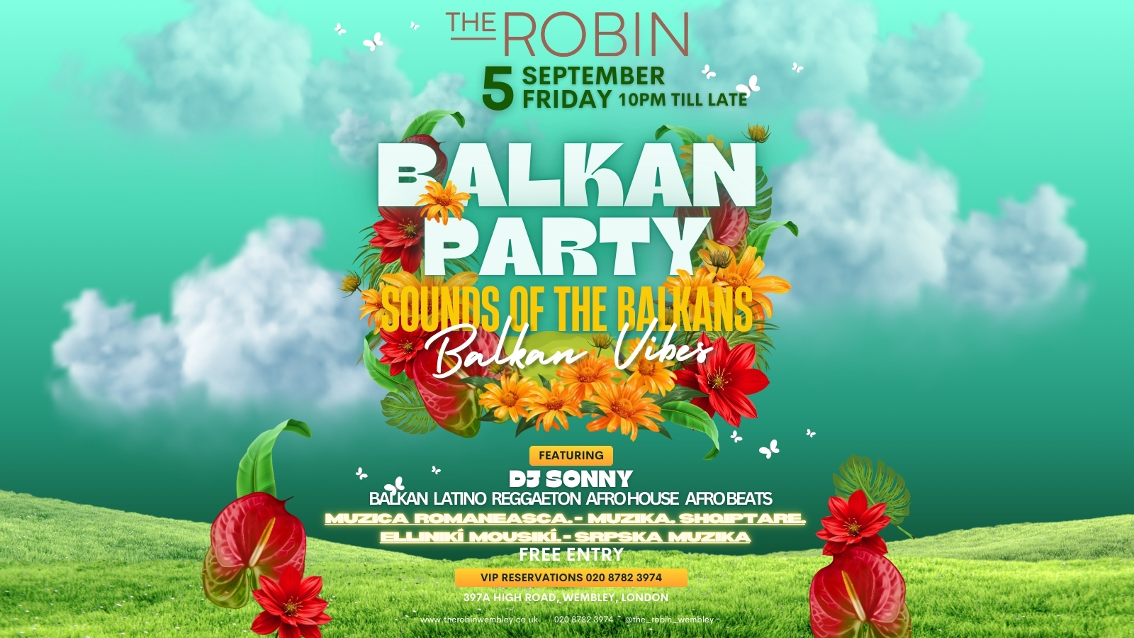 🔥 BALKAN PARTY IN LONDON 🔥 🎧 With DJ SONNY – Live in Wembley! 📍 The Robin , Wembley, London 📅 [05.09.2025] | ⏰ Doors Open: 10PM - Till Late