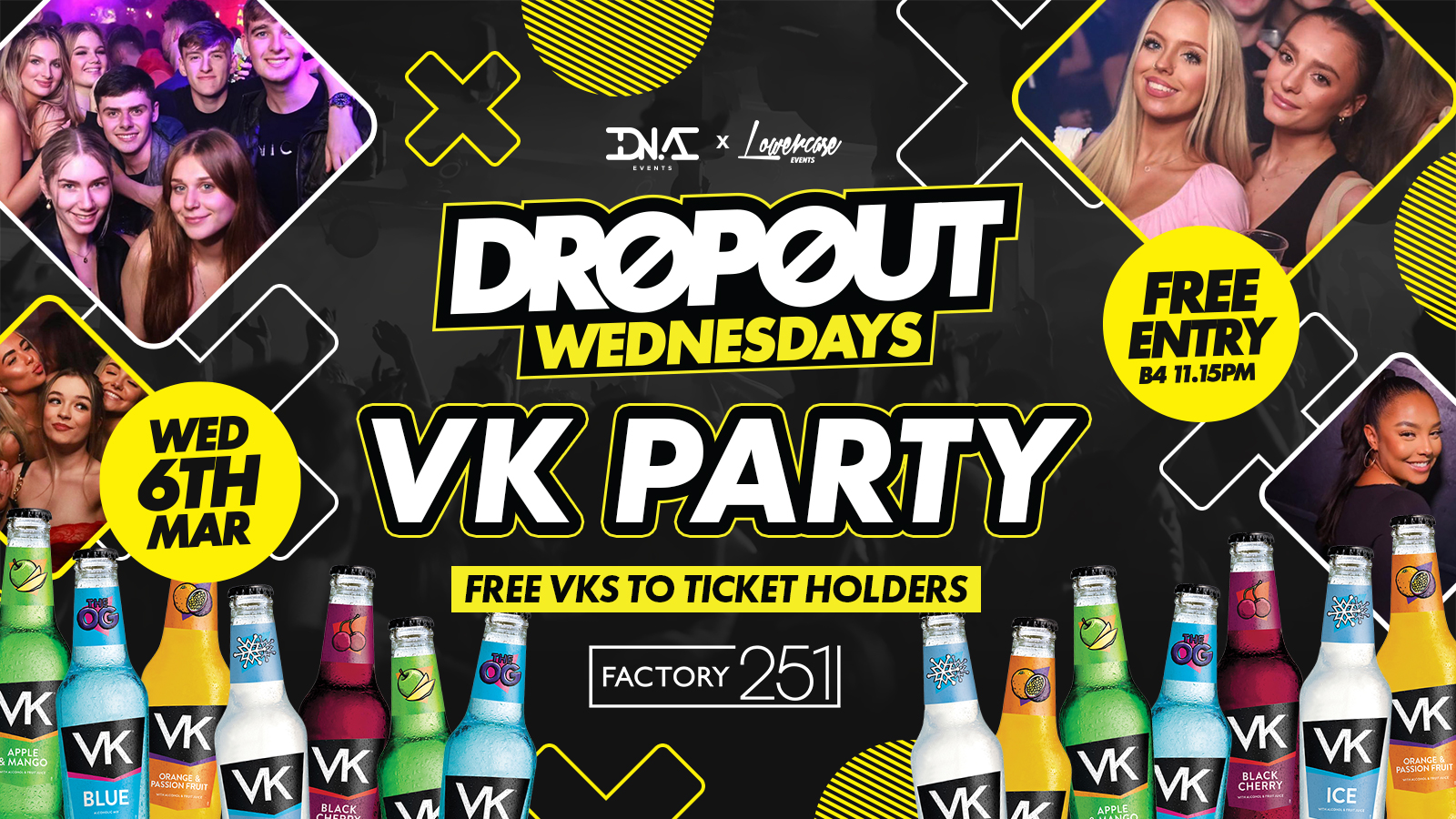Dropout Wednesdays at Factory - Free Entry & Free VK With Every Ticket 🎟🍾