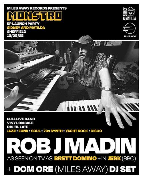 Best known as his cult alter-ego, Brett Domino (8 Out of 10 Cats Does Countdown), Rob J Madin takes a step away from the comedy with MONSTRO – ditching the funny in favour of spacey synths, silky electric pianos, and infectious 70s-tinged R&B/jazz-funk grooves.