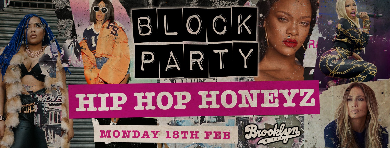 Mon 18th Feb - Hip Hop Honeyz: Bringing you the very best from Hip Hop's Queens, past and present! All alongside the Brashest Block Stompin' Hip Hop, Party RnB, Urban, Grime and House across 3 Floors and outdoor terrace.