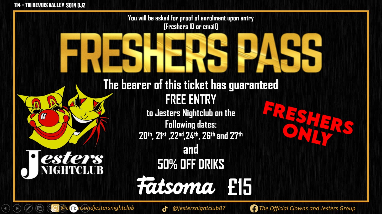Jesters Freshers Pass – £15