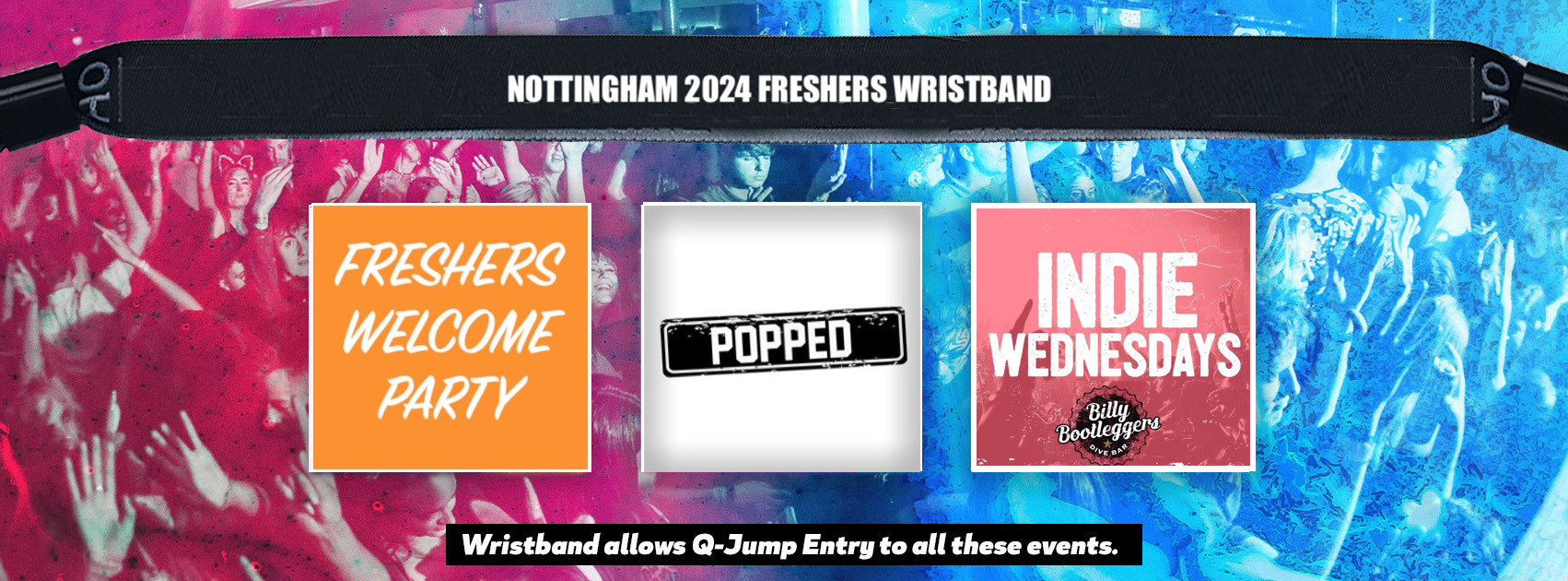 The ultimate Freshers Wristband which gains you Q-Jump access and entry to 3 of the biggest Freshers Events.. The legendary Freshers Welcome Party, Indie Wednesdays & the Taylor Swift Special