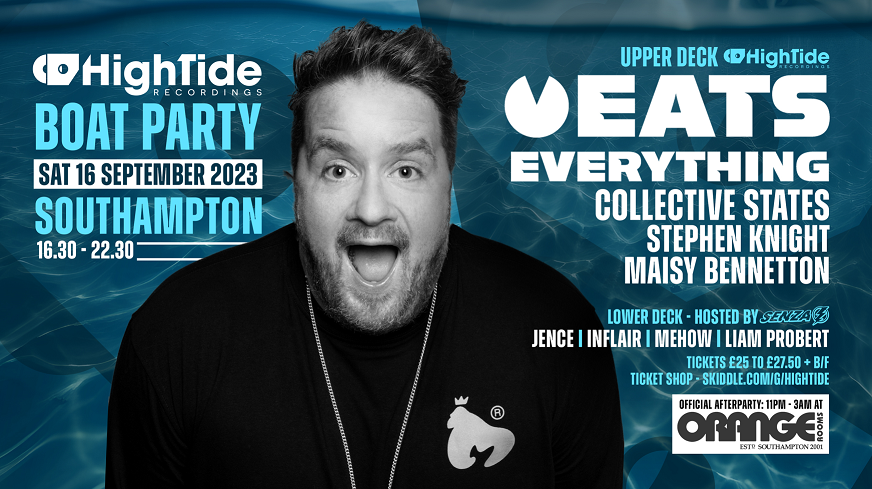 Following the resounding success of both the James Zabiela & Nic Fanciulli and Bushwacka boat parties, High Tide returns for its most eagerly awaited annual event, the boat party!! We are therefore super excited to announce this year’s guest and another High Tide debutant, the absolute legend that is Eats Everything.