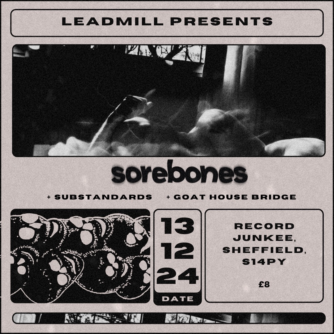 Crafting earnest and introspective songs that draw from grunge and dreampop, Sorebones is the project of Derbyshire-based musicians Kane Warren, Kian Woodhead, Cale Hood, and Isaac Jordinson. Warren, Hood, and Woodhead, whose friendship spans two decades, formed the band in 2023 after years of experiencing music only from the punter’s side of the stage.