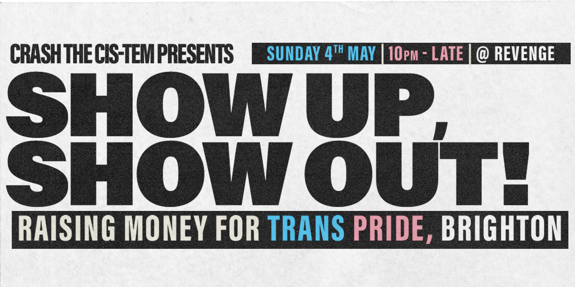 Fundraising for Trans Pride Brighton, we'll be partying for a cause on Bank Holiday Sunday, 4th May 🏳️⚧️