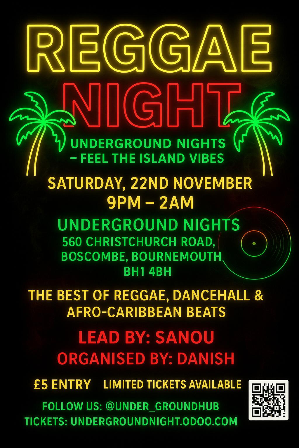 Get ready for an unforgettable night of Reggae, Dancehall & Afro-Caribbean beats at Underground Nights in Bournemouth! 🎶