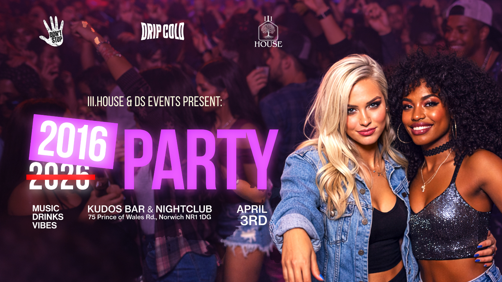 DS (DON’T STOP) brings classic 2016 anthems and modern jams together for a high-energy night built on nostalgia, noise, and not wanting the night to end.