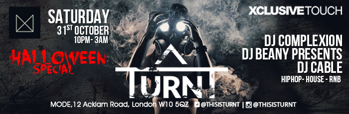 After a sell out event at our last TURNT party, we are excited to announce that we are turning up once again for a Halloween special, but this time, we’re heading West! Join us on Saturday 31st October at Mode Collective in Notting Hill for what will be another night of straight hiphop bangers and house anthems with a gruesome twist.