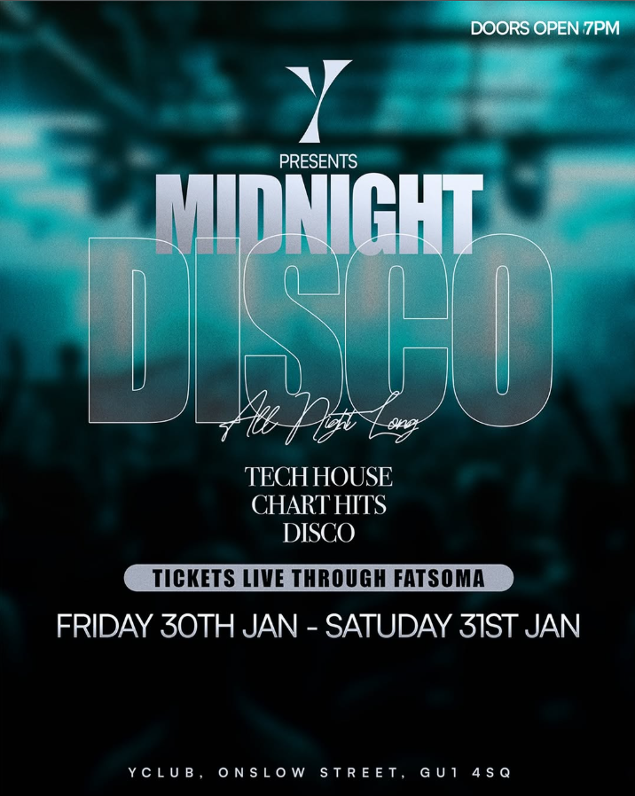 MIDNIGHT DISCO returns in our new upstairs club space. Expect the best of house music and surrounding genres played by our live DJs! Free entry before 10pm and drinks offers before 10pm in Y Lounge