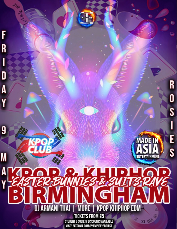 The theme is simple. Think Bunnies. Or Don a Suit. Then March down to Birminghams only month oriental club night. With kpop, khiphop and EDM in the live room, there's something for everyone 💘