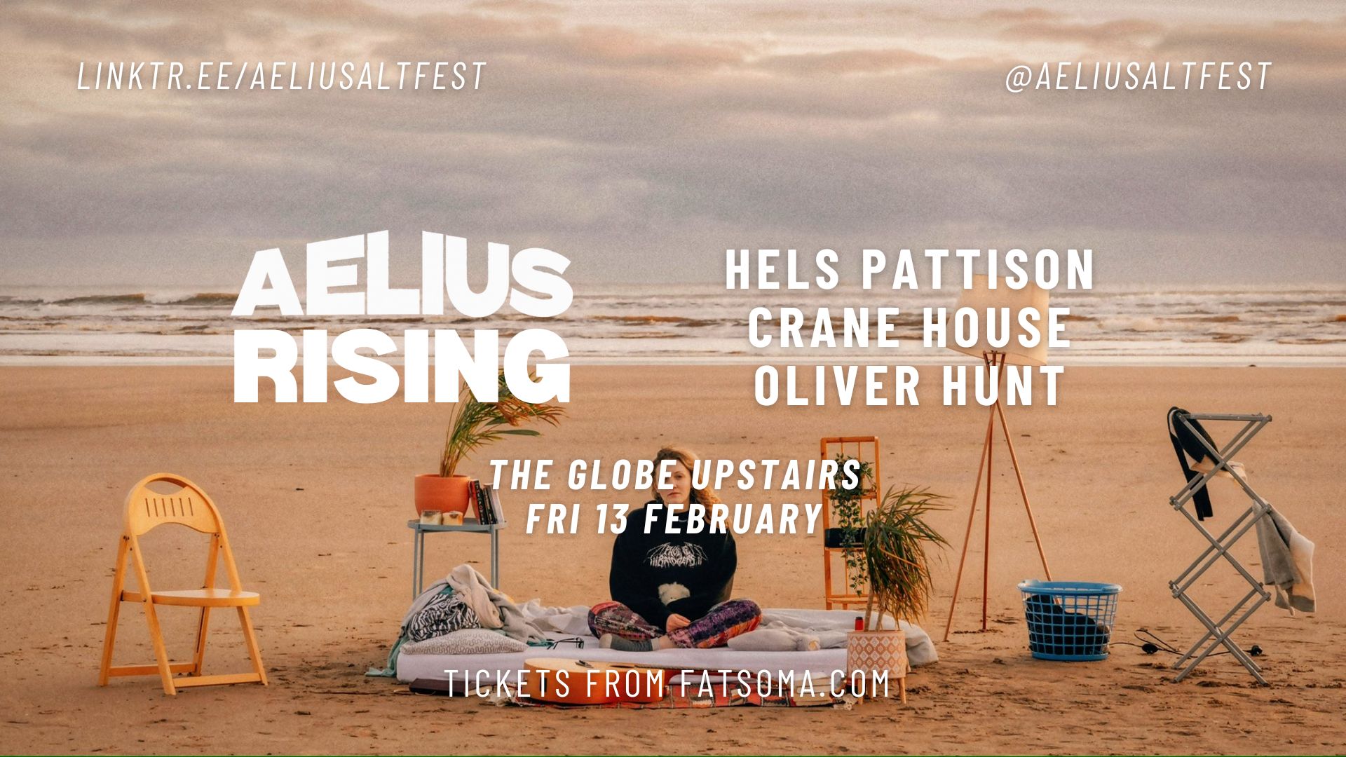 Aelius Rising showcases a selection of artists both performing and not (yet) performing Aelius Alternative Festival 2026. Aelius Rising is a series of three live events taking place at The Globe Upstairs on Friday the 9th of January, Friday the 13th of February, and Friday the 13th of March.