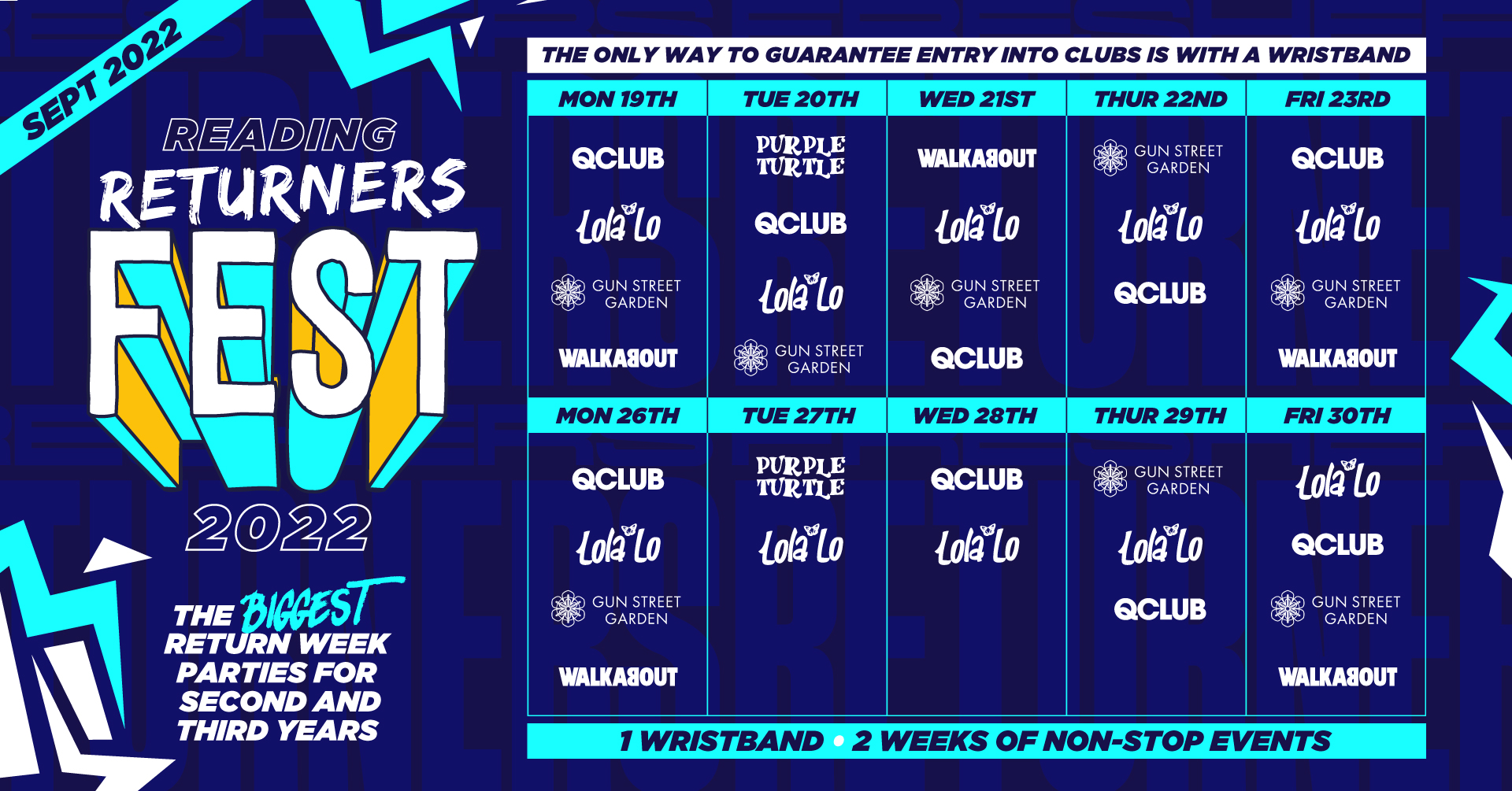 THE OFFICIAL RETURNERS FEST 2022. This event is the 2nd & 3rd years' equivalent to FRESHERS FORTNIGHT! 🎪