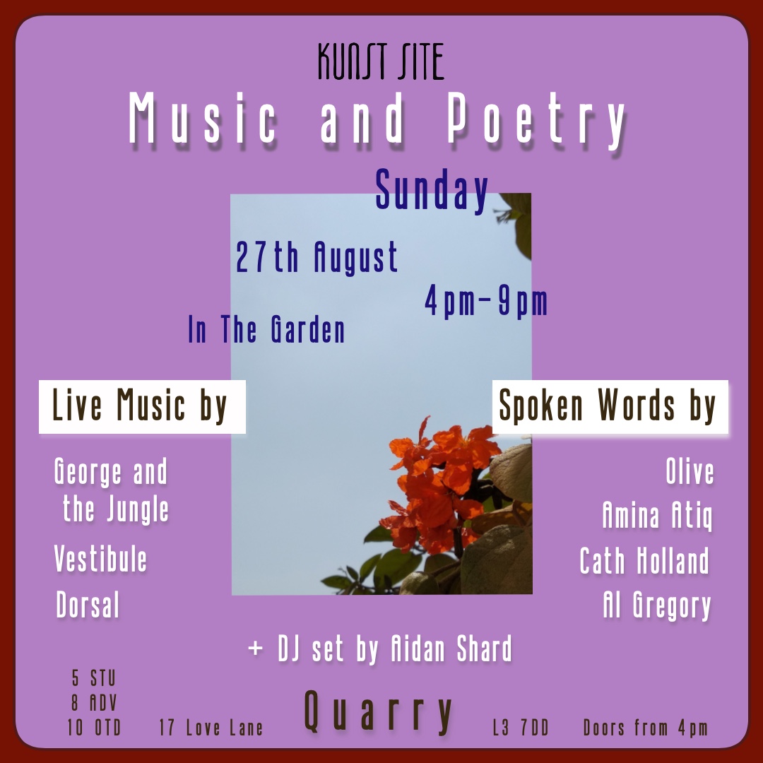 Kunst Site presents the second instalment of its Music and Poetry event, a Sunday afternoon/evening filled with live music and spoken word performances by various local artists.