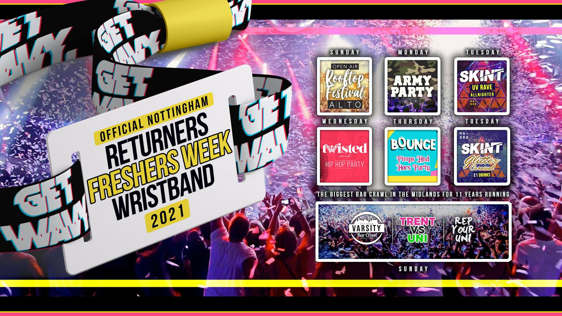 👕 Free T-shirt for first 1000 on each team or with an official Nottingham Freshers Week Wristband 2021 👕
