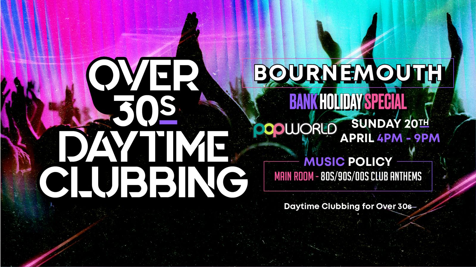 Get ready for a party like no other as Over 30s Daytime Clubbing lands at the iconic Popworld on 20th April! This is your chance to relive the magic of your clubbing days without sacrificing your beauty sleep.