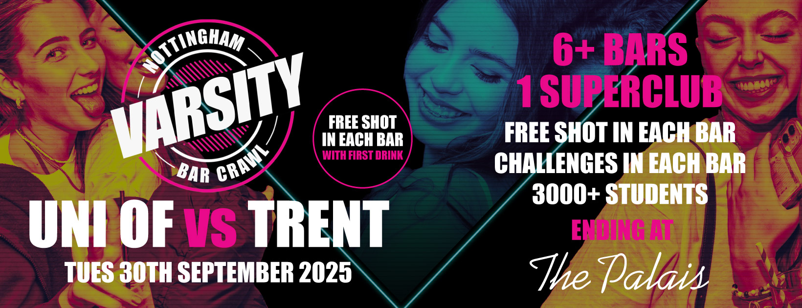 Last year we saw over 5000 of you cause havoc on the streets of Nottingham for the annual Varsity Bar Crawl 🚓