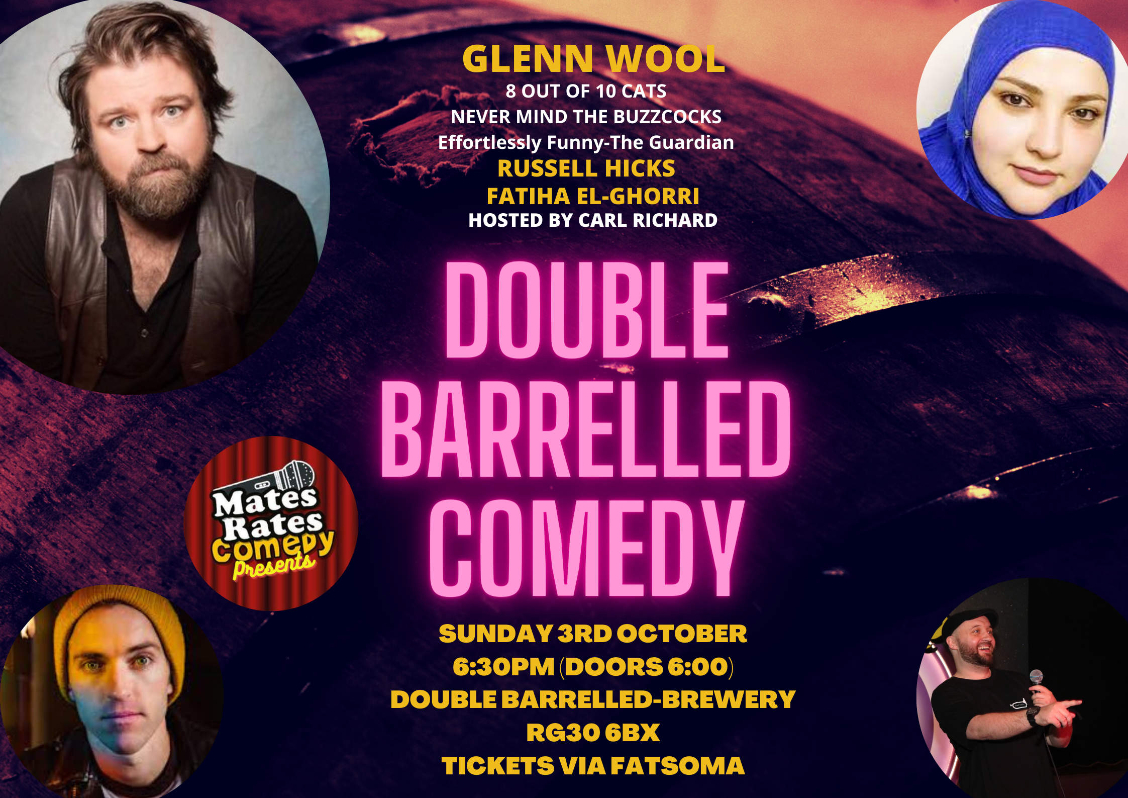 Stand Up Comedy in Reading is back. Mates Rates Comedy is proud to present Double Barrelled Comedy with Headliner Glenn Wool on Sunday 3 October at 6:30pm.