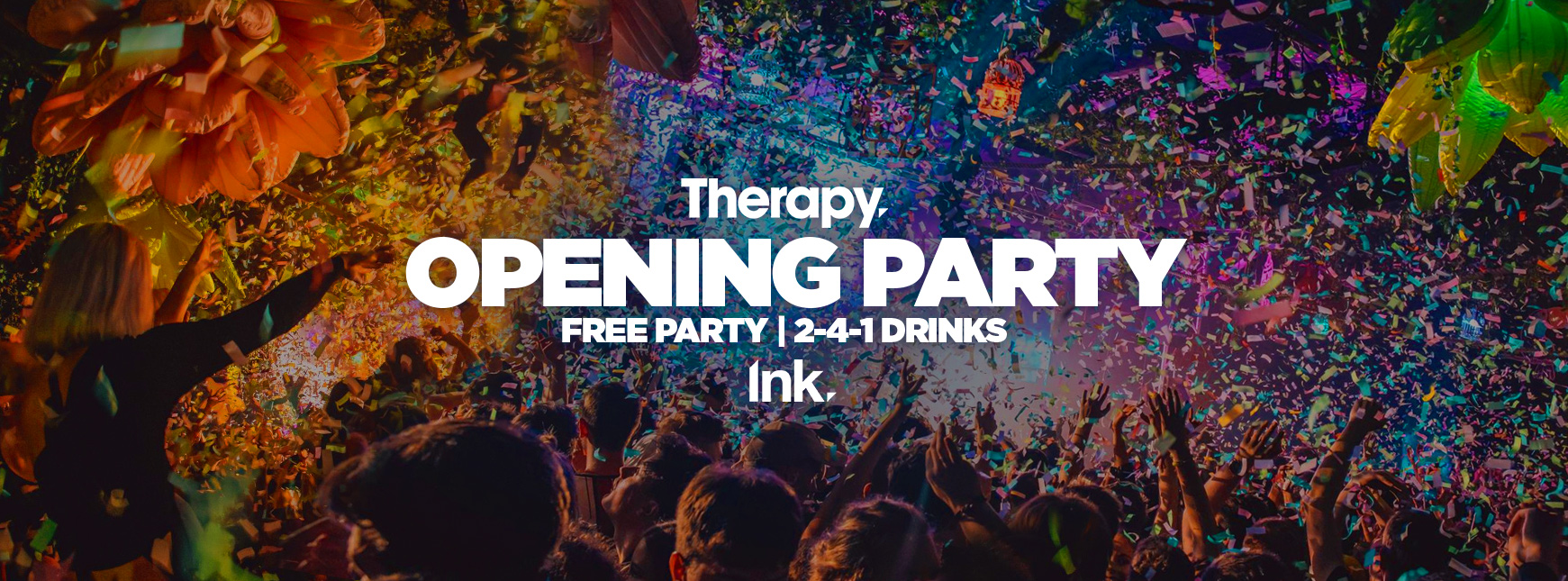 Therapy - Opening FREE PartyThursday 2nd MayTherapy returns for the first instalment of our Summer free parties. See in the summer semester with a FREE party & 2-4-1 drinks.Free party tickets limited to 1 per person.*student I.D required
