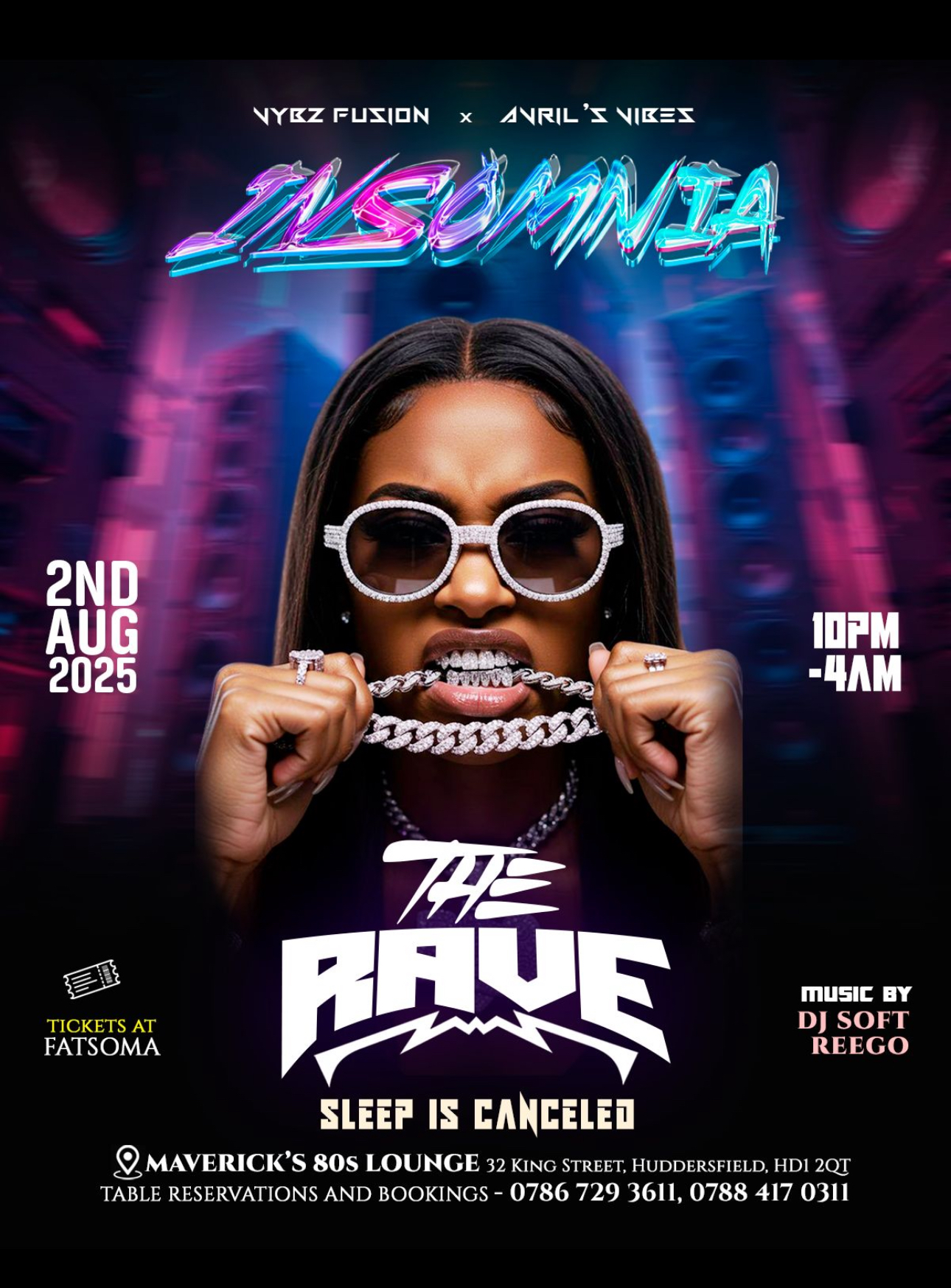 Get ready for a night where the bass hits harder than your alarm clock! On Saturday 2nd August 2025, we’re taking over Maverick’s 80s Lounge in Huddersfield for a rave that refuses to let you rest. From 10PM till 4AM, it’s non-stop vibes, heavy beats, and pure energy.