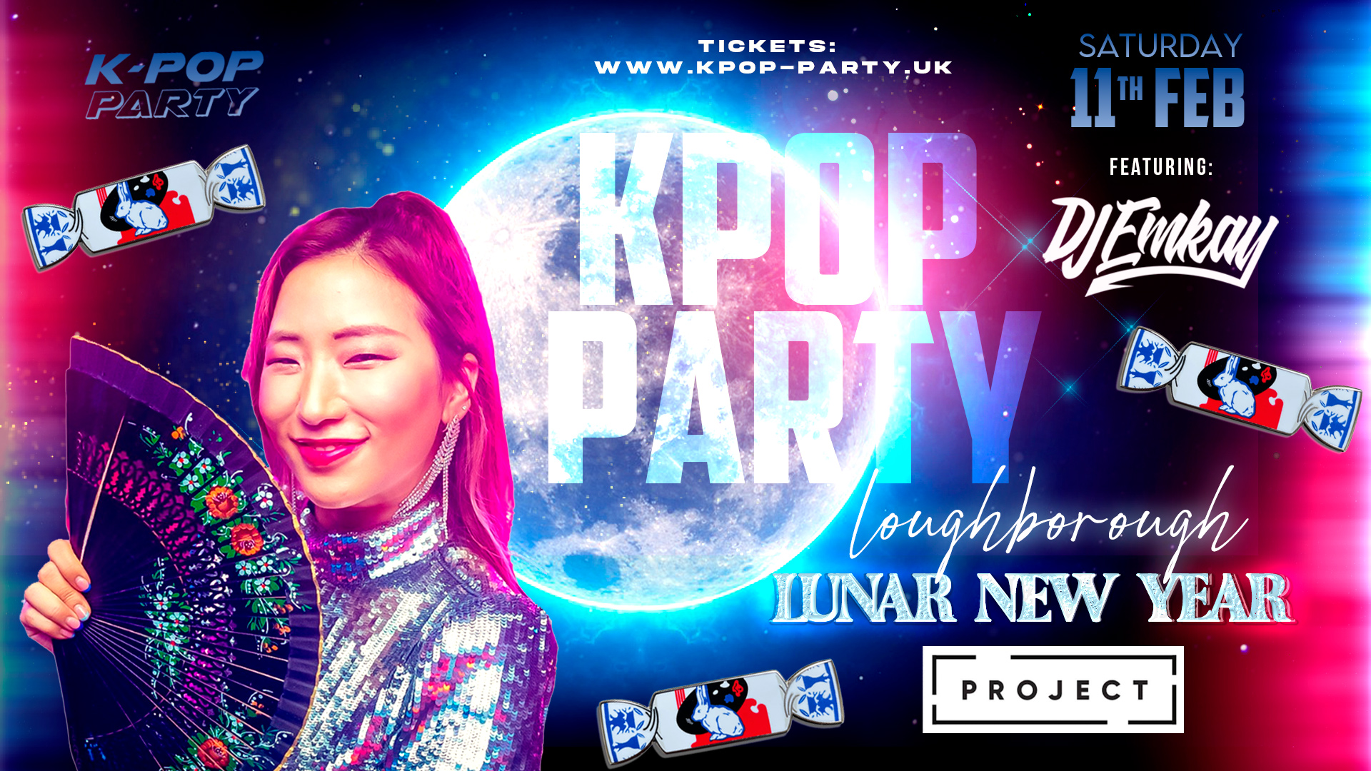 We welcome 2023 celebrating and inviting you all back for our first edition K-Pop Party UK in Loughborough. This time we bring the LUNAR NEW YEAR KPOP PARTY with DJ EMKAY!! We coming to Loughborough!! We takeover Project Nightclub.