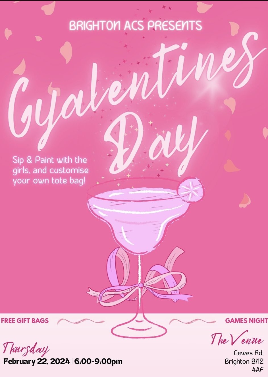 Brighton ACS present sip and paint galantines edition 🎨🍷, for the GURLS.