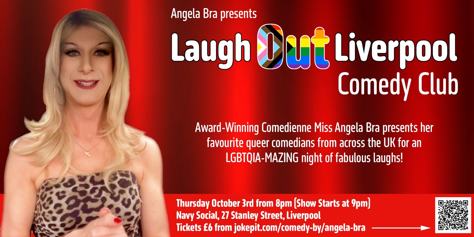 Award-Winning Comedienne Miss Angela Bra presents a fabulous night full of laughs presented by Laugh Out Liverpool Comedy Club