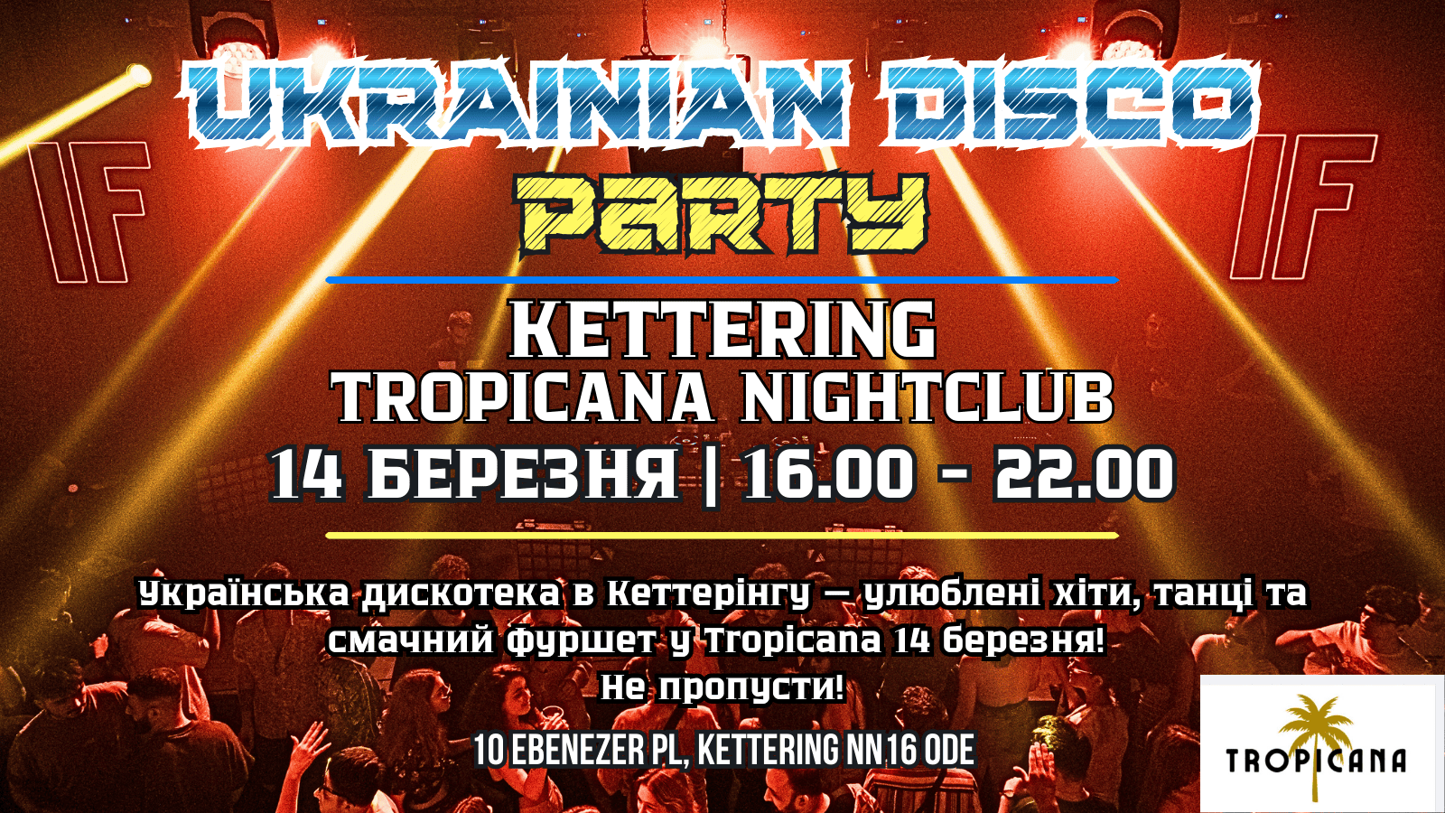 On March 14, Tropicana Nightclub will be filled with Ukrainian hits, energy, and the atmosphere of a true celebration 💙💛