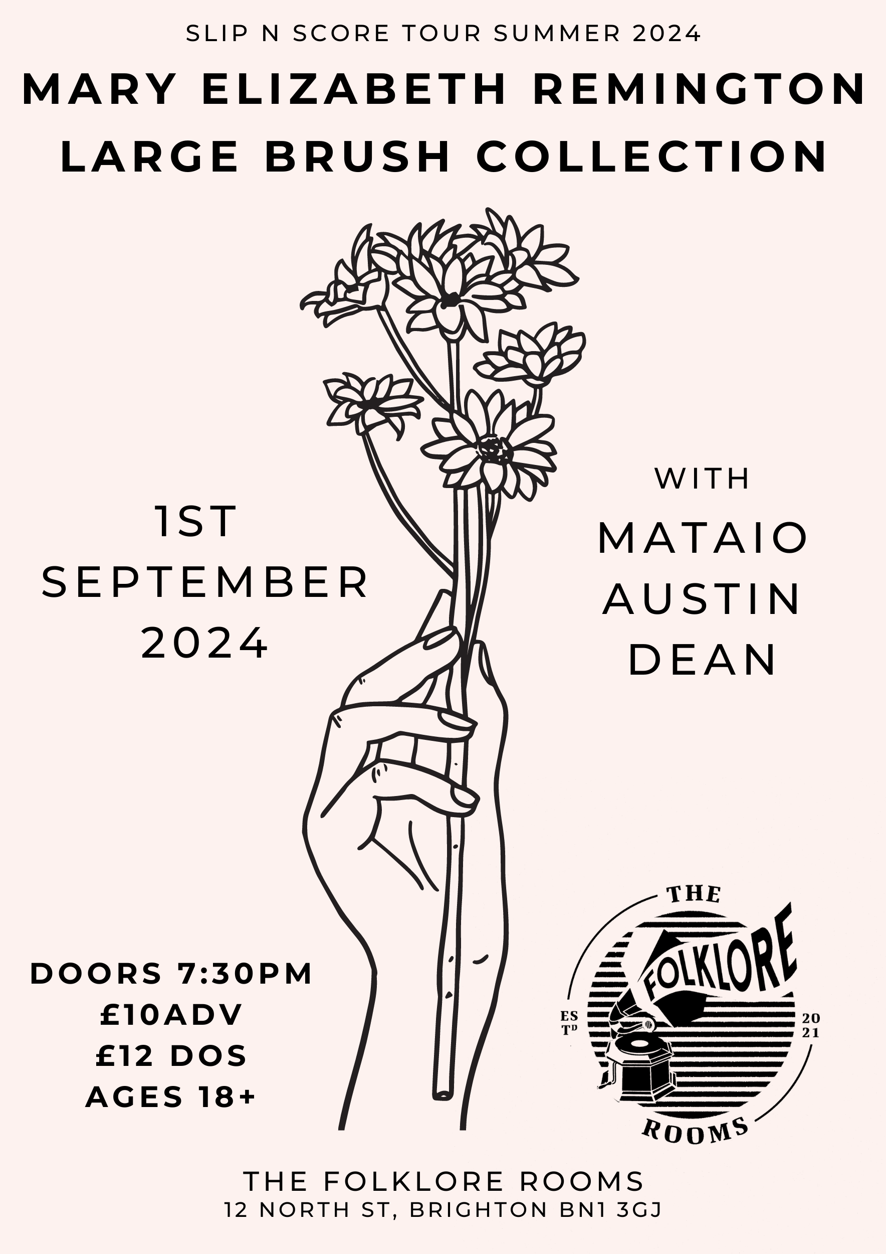 Mary Elizabeth Remington and Large Brush Collection's Slip & Score tour comes to its terminus in Brighton on September first. Meeting at Kerrville Folk Festival, Mary and LBC's Nora Predey discovered a friendship and musical kinship that brings them to the United Kingdom together in Summer 2024.