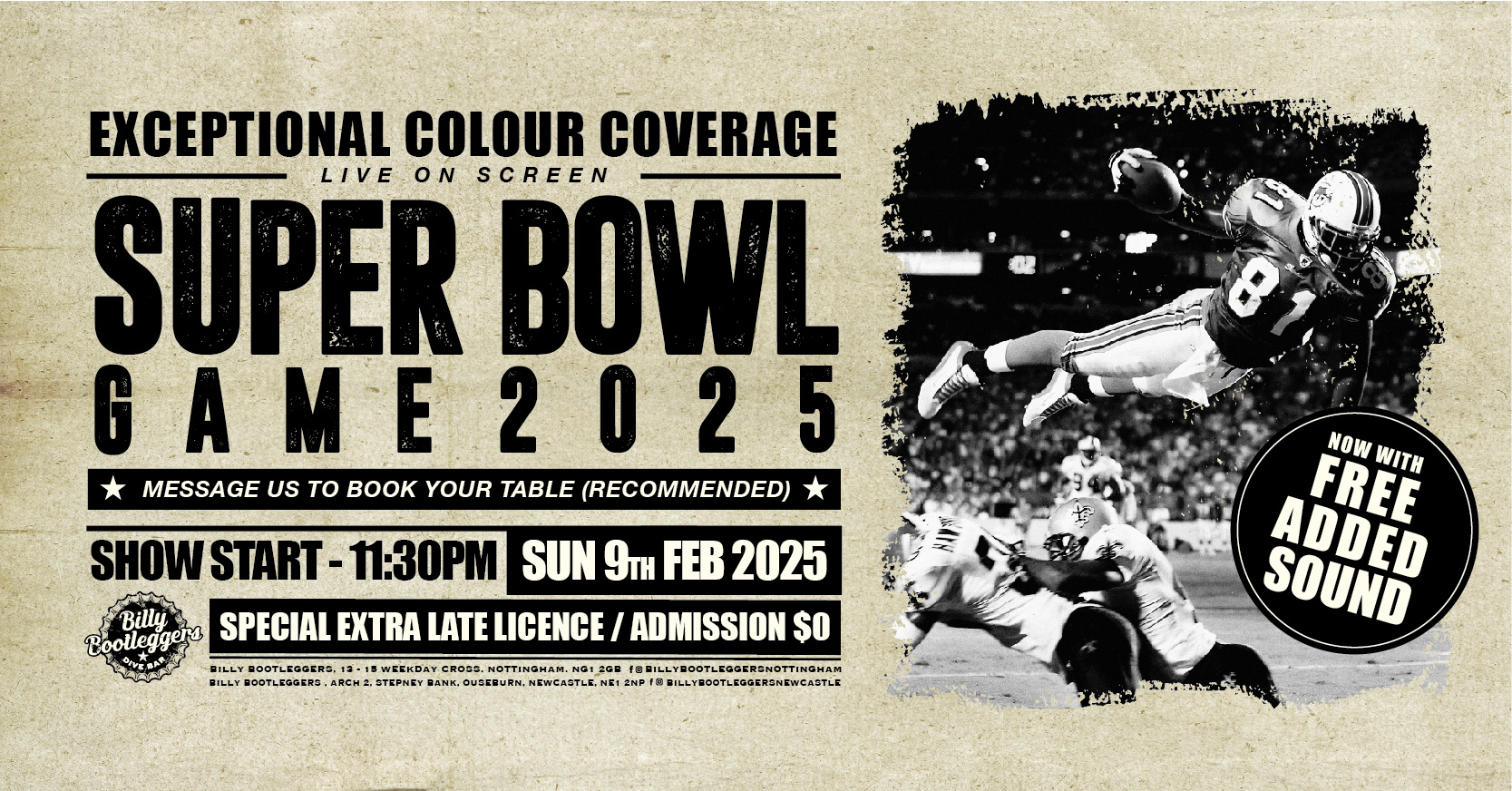 WE'RE SHOWING THE SUPERBOWL LIVE ON BILLY'S BIG TELLY!!!