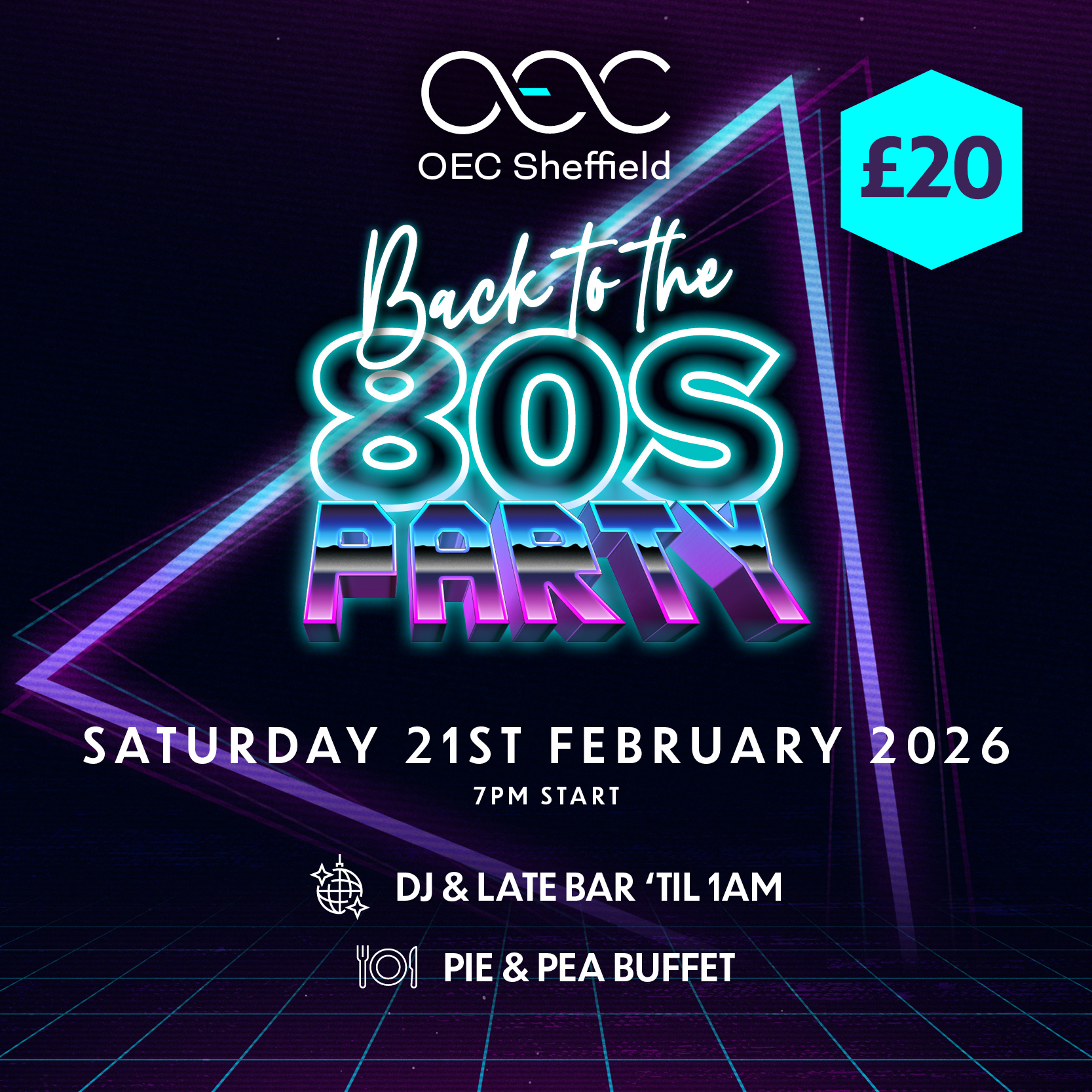 Bust out your best moves to the biggest hits of the era and fuel your night with a proper retro treat: a hearty pie and pea buffet that’s as iconic as the fashion!