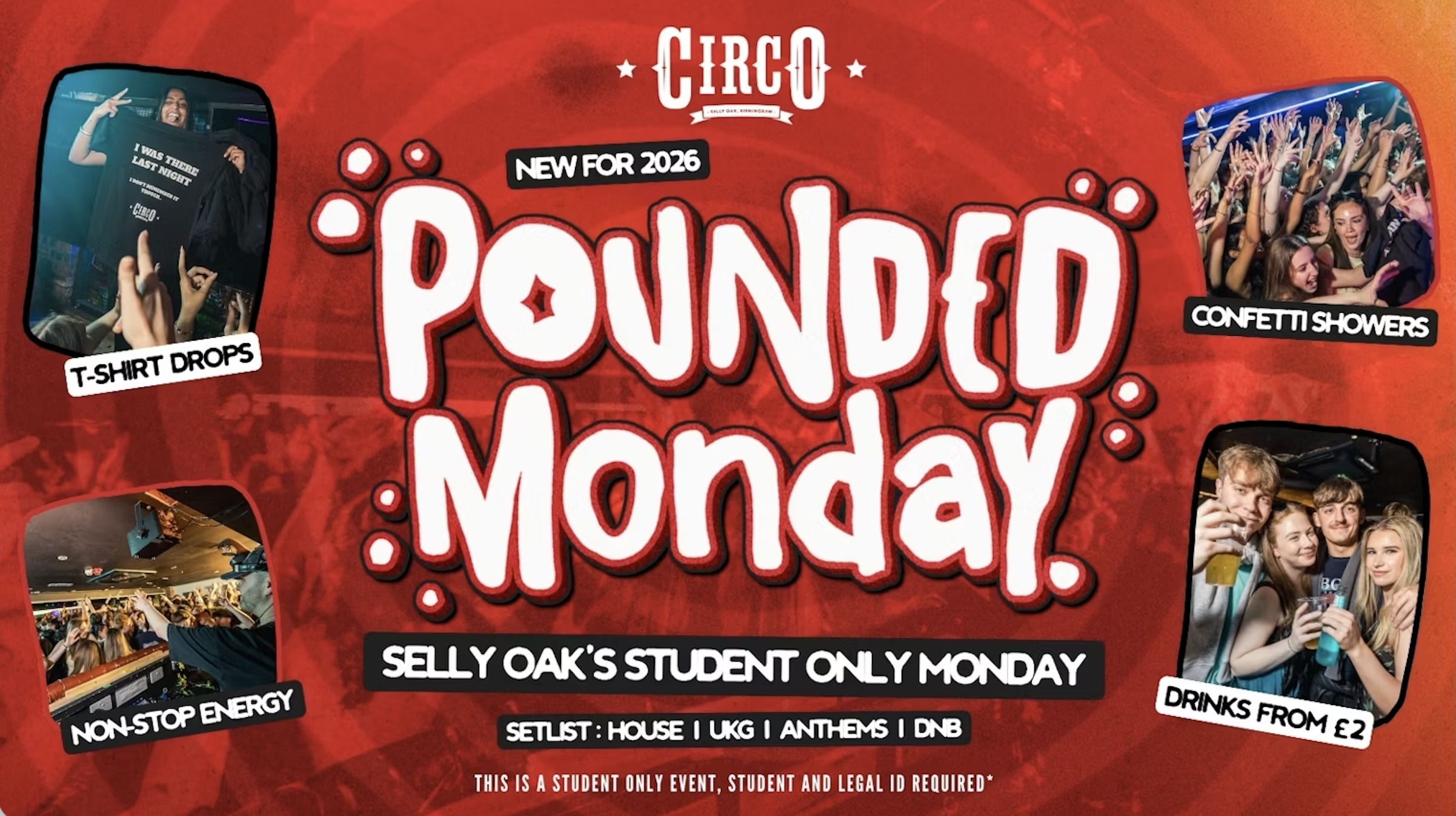 You asked and we listened, we've gone back to our roots and made Pounded Mondays all about the ENERGY! We've refreshed your Monday sound and added a load of popular House, UKG and DnB anthems alongside a sprinkling of that classic Circo sound.