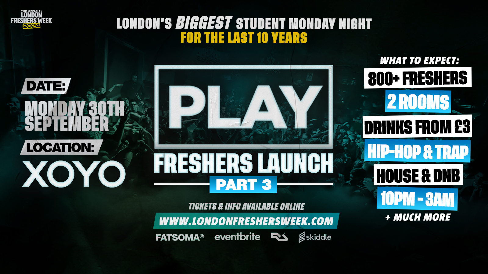 This is it – the grand finale of the Freshers Launch at XOYO! After two incredible nights, we’re ending the month with a bang. For Part 3, get ready for an unforgettable Monday night at London’s BIGGEST student club night.