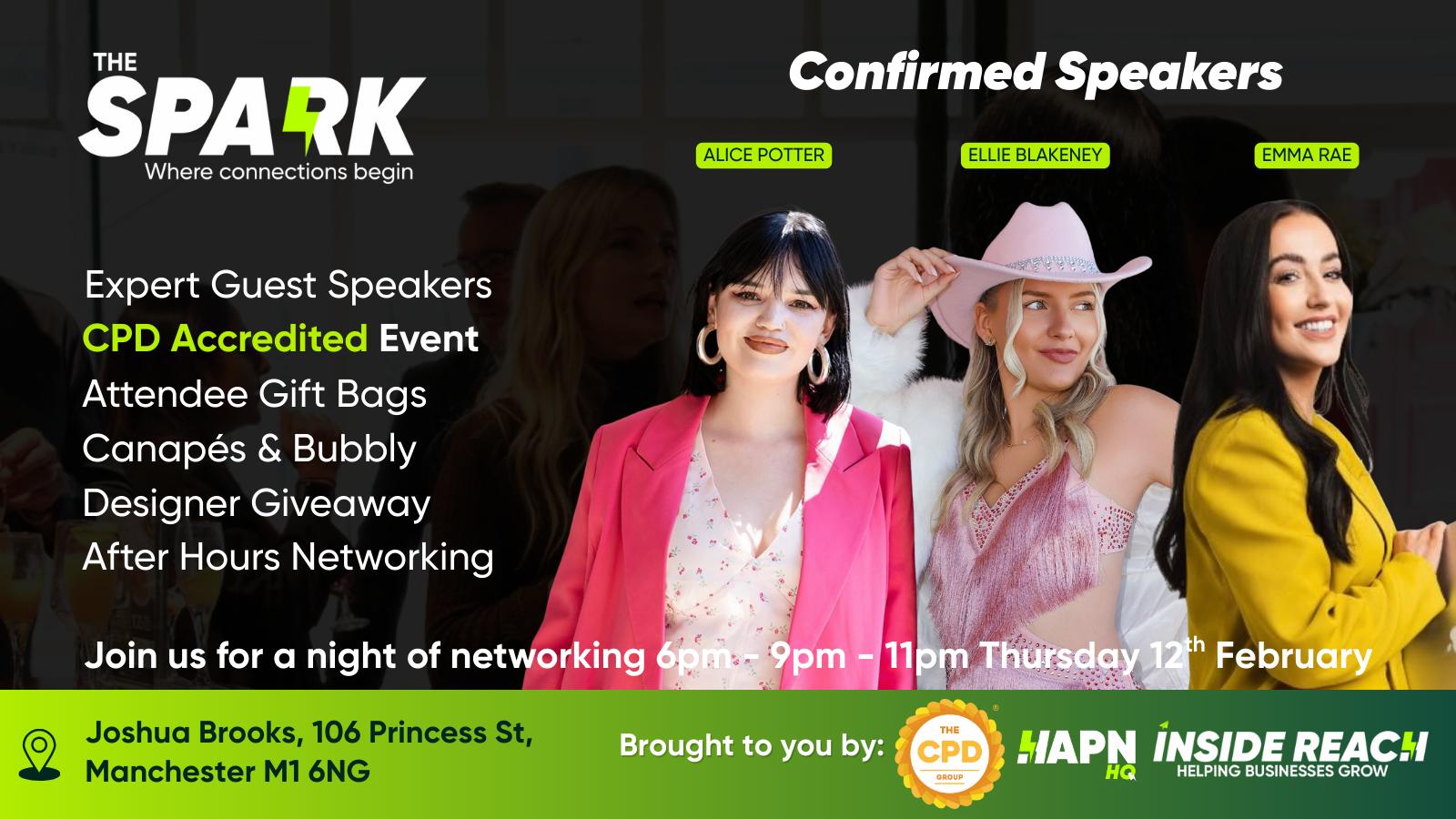 Inside Reach and Hapn HQ present an evening of CPD-accredited learning, real-world strategy, and high-value networking for UK business owners, founders, and entrepreneurs. The event takes place at a central Manchester venue on Wednesday 12th February, running from early evening into late-night networking, with a separate social-only ticket released for those who want to join purely for the informal mixer.