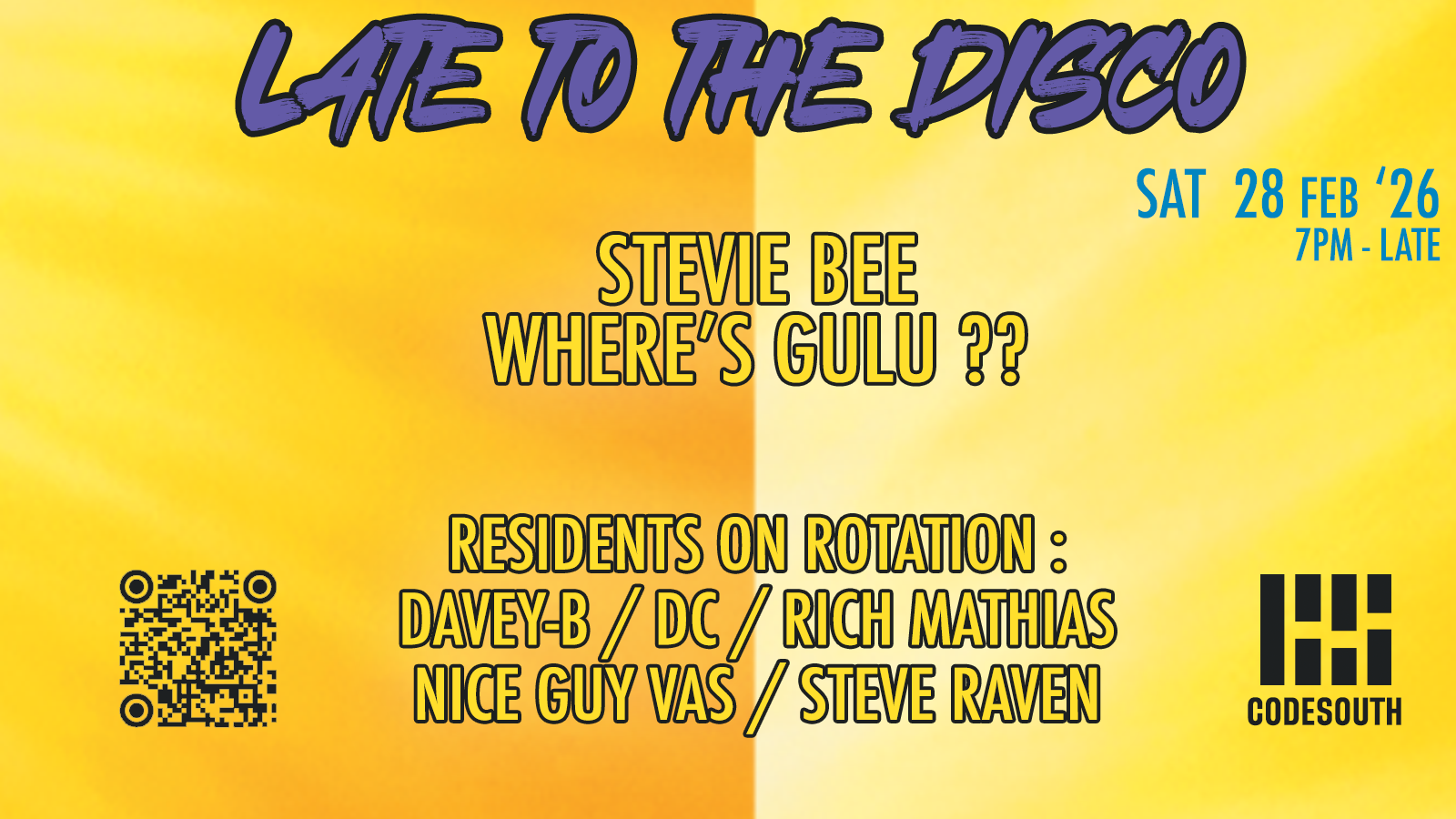 Shake off those winter blues in a safe, all inclusive space built for dancing, making new friends and celebrating old ones as well. Codesouth dis will supply all the vibes and music you need whilst the bar ensures the drinks are flowing until the early hours of the morning. We have recently upgraded the house sound system to give you a bit more oomph but not too much to drive our neighbours to distraction.