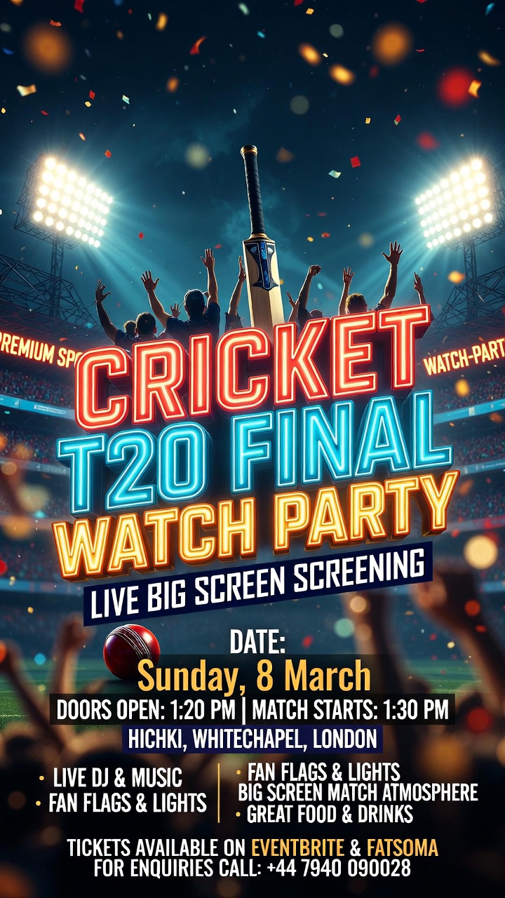 Join us at Hichki, Whitechapel for the T20 World Cup Final Live Screening, where fans come together for an electric match-day atmosphere, great food, drinks, and big-screen cricket.