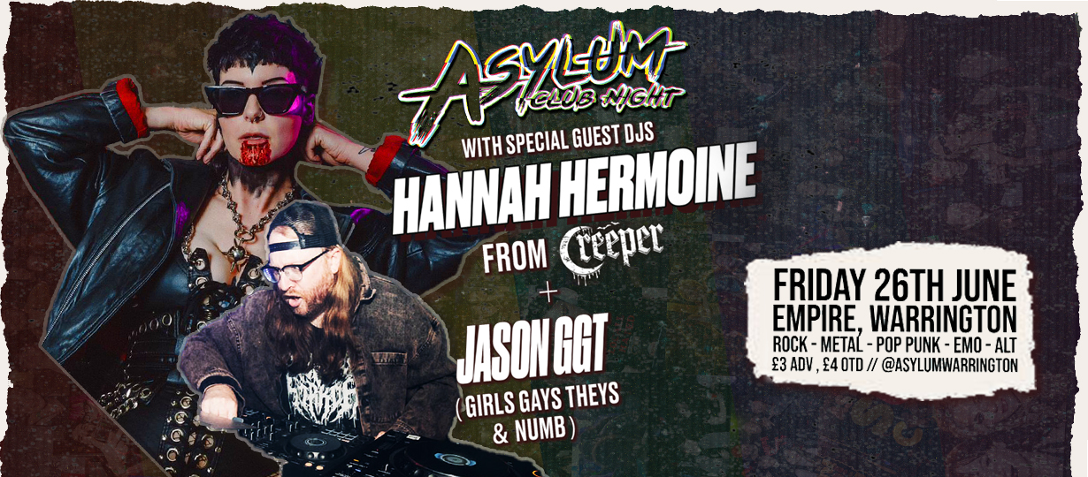 This June, Asylum Club Night is joined by two very guests! We are honoured to have special joint DJ set from Hannah Hermione (Creeper) and Jason GGT (Girls, Gays & Theys/NUMB.), alongside some of Asylum's best DJ's!
