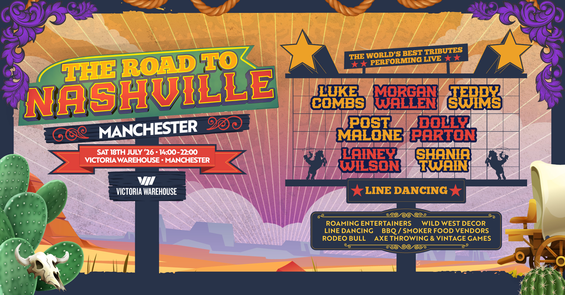 On Saturday 18th July 2026, the Victoria Warehouse will be transformed into a boot-stompin' country fest, featuring incredible tributes to Luke Combs, Post Malone, Johnny Cash, Miley Cyrus, Shania Twain, Dolly Parton, and Lainey Wilson. π΅